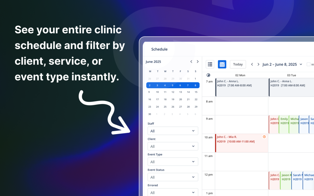 Prevents overscheduling or service over-delivery outside allowed CPT ranges. - Built-in billing and claims